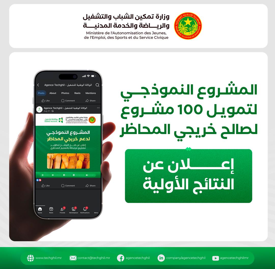 إعلان النتائج الأولية للمترشحين المؤهلين للاستفادة من المشروع النموذجي لتمويل 100 مشروع لصالح خريجي المحاظر