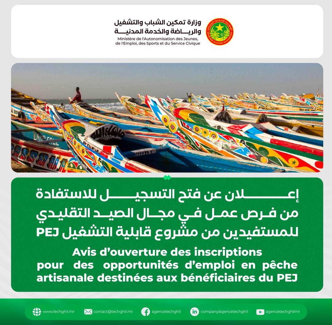 Avis d’ouverture des inscriptions pour des opportunités d’emploi en pêche artisanale destinées aux bénéficiaires du PEJ