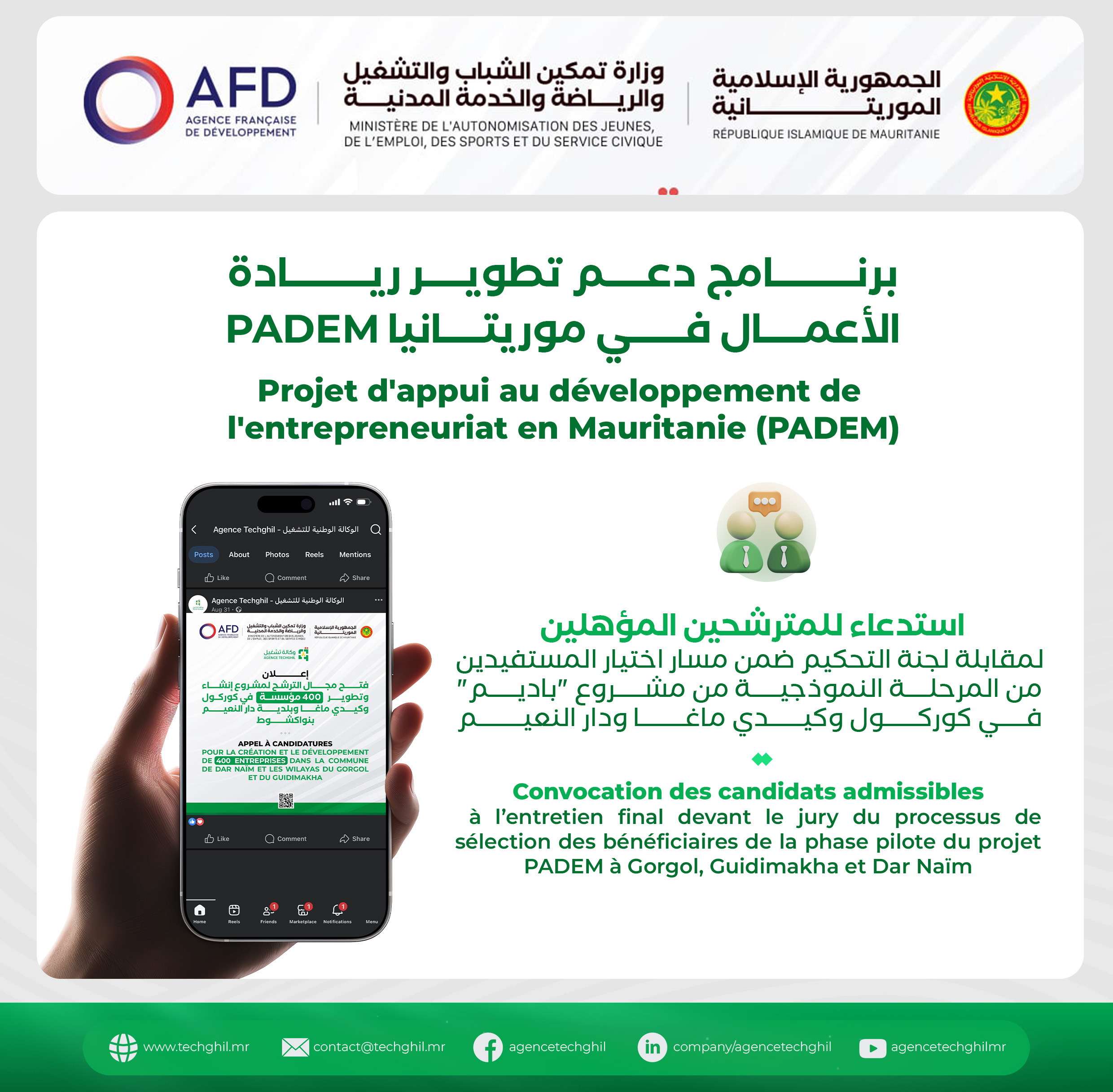 l’Entrepreneuriat en Mauritanie, notamment des femmes (PADEM), à se présenter