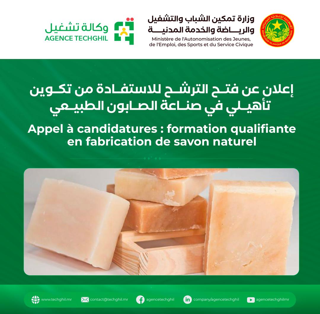 Annonce d’ouverture des candidatures pour une formation qualifiante dans le domaine de la fabrication du savon naturel