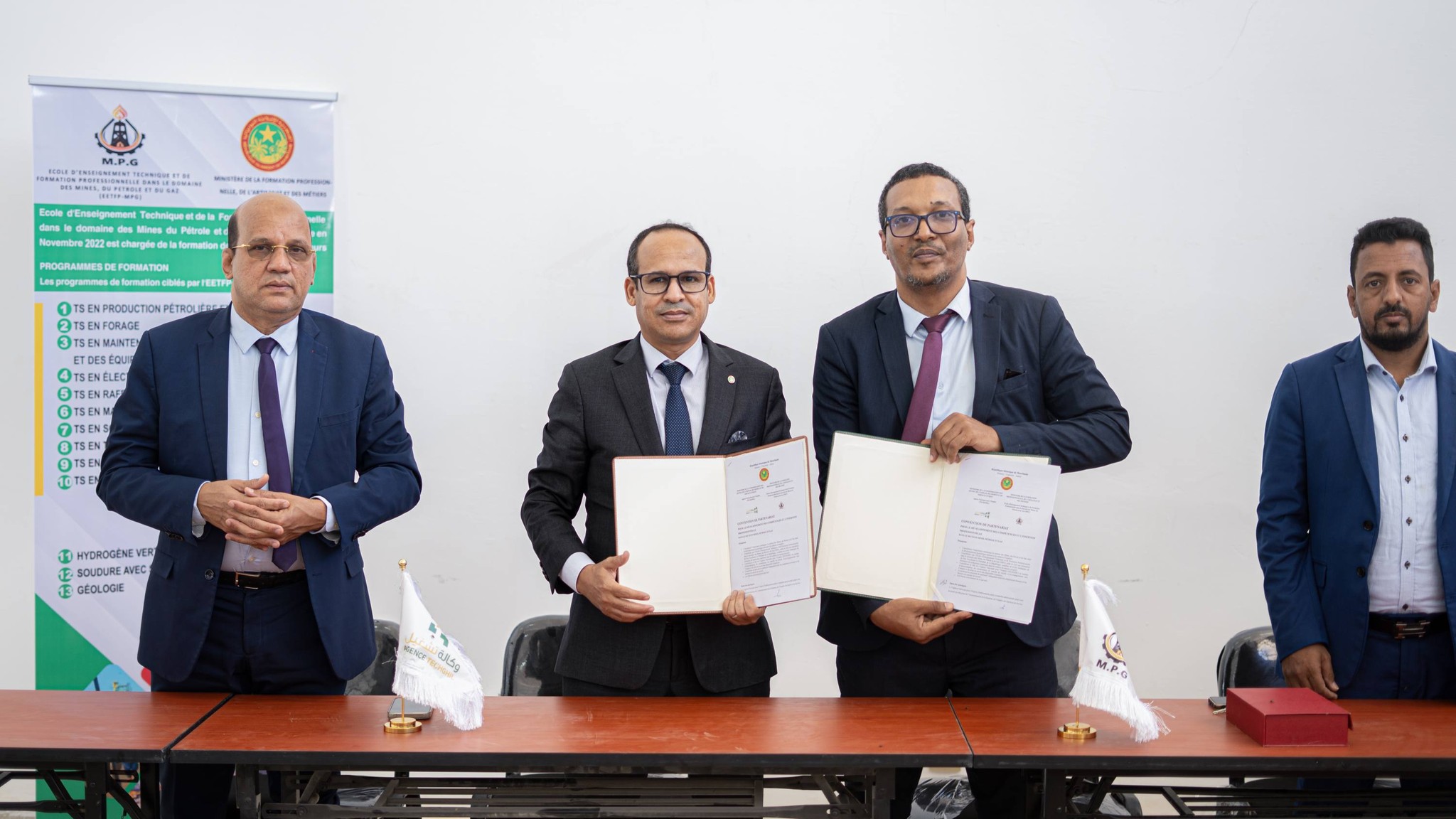 Cette convention, signée par le Directeur général de l’Agence TECHGHIL, M. Abdel fattah ABDEL FATTAH, et le Directeur général de l'École d'Enseignement Technique et de Formation Professionnelle - Mine, Pétrole et Gaz, M. Mohamed Vall Yahya, vise à instaurer une coopération efficace entre les deux parties. Elle repose notamment sur l’adaptation des filières de formation aux exigences du marché, la facilitation de l’accès des étudiants et des diplômés aux opportunités de stage et d’emploi, ainsi que le renforcement des dispositifs d’accompagnement et de suivi post-formation.